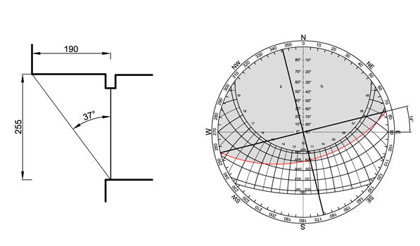 Sun investigation for the use of a south-oriented balcony as a rigid sun-protection panel for the floor underneath